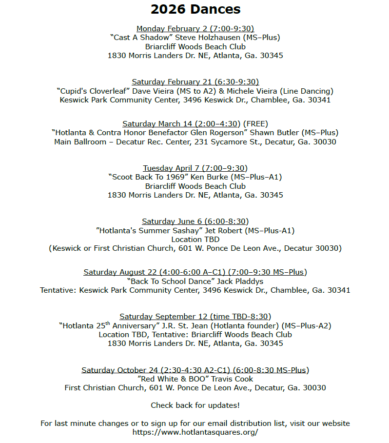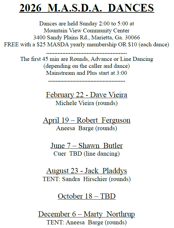 Our dances – usually on Saturday nights – offer a chance to dance to guest callers and practice what has been learned in class. Dances are always open to non-members and visitors who have completed the appropriate CALLERLAB-based course for the level that they plan to dance. And, as always, the dress code is casual!